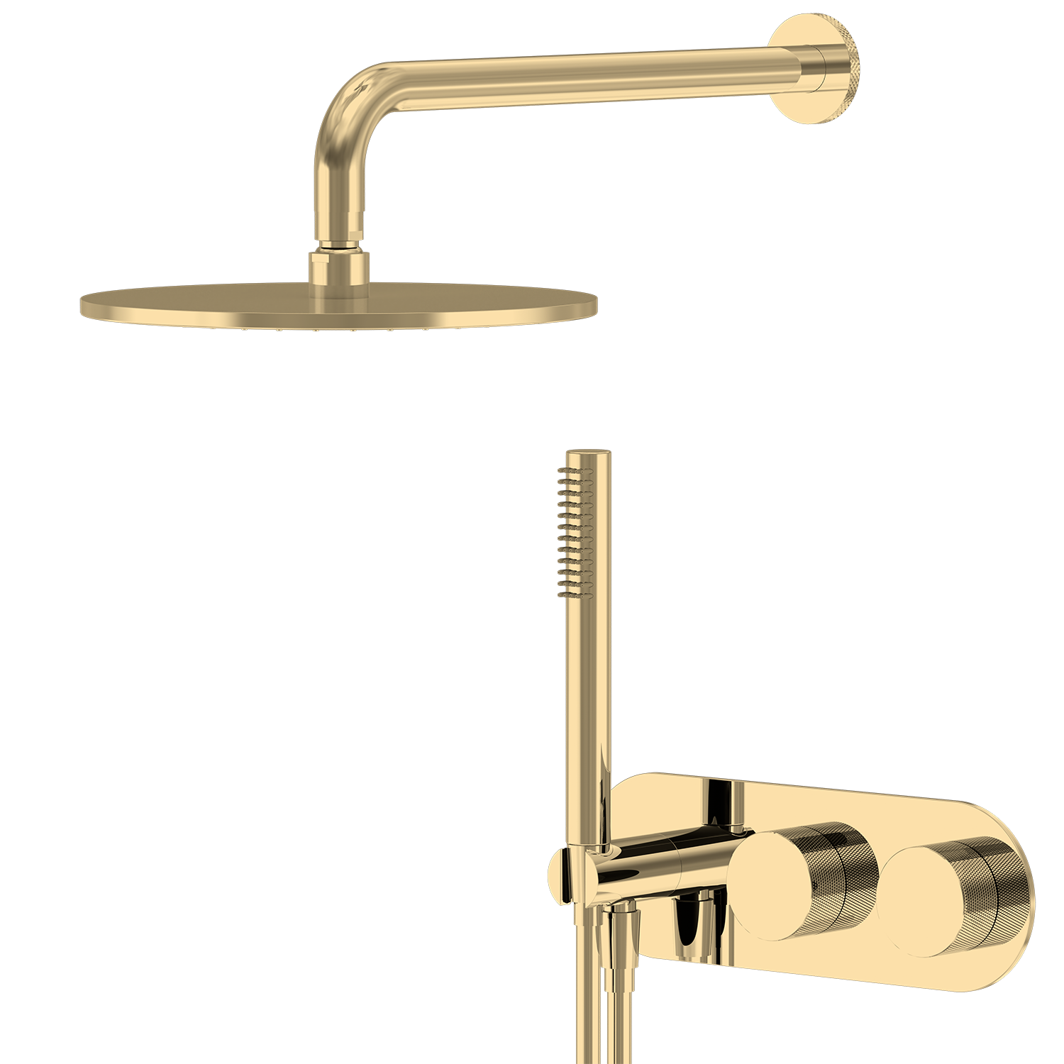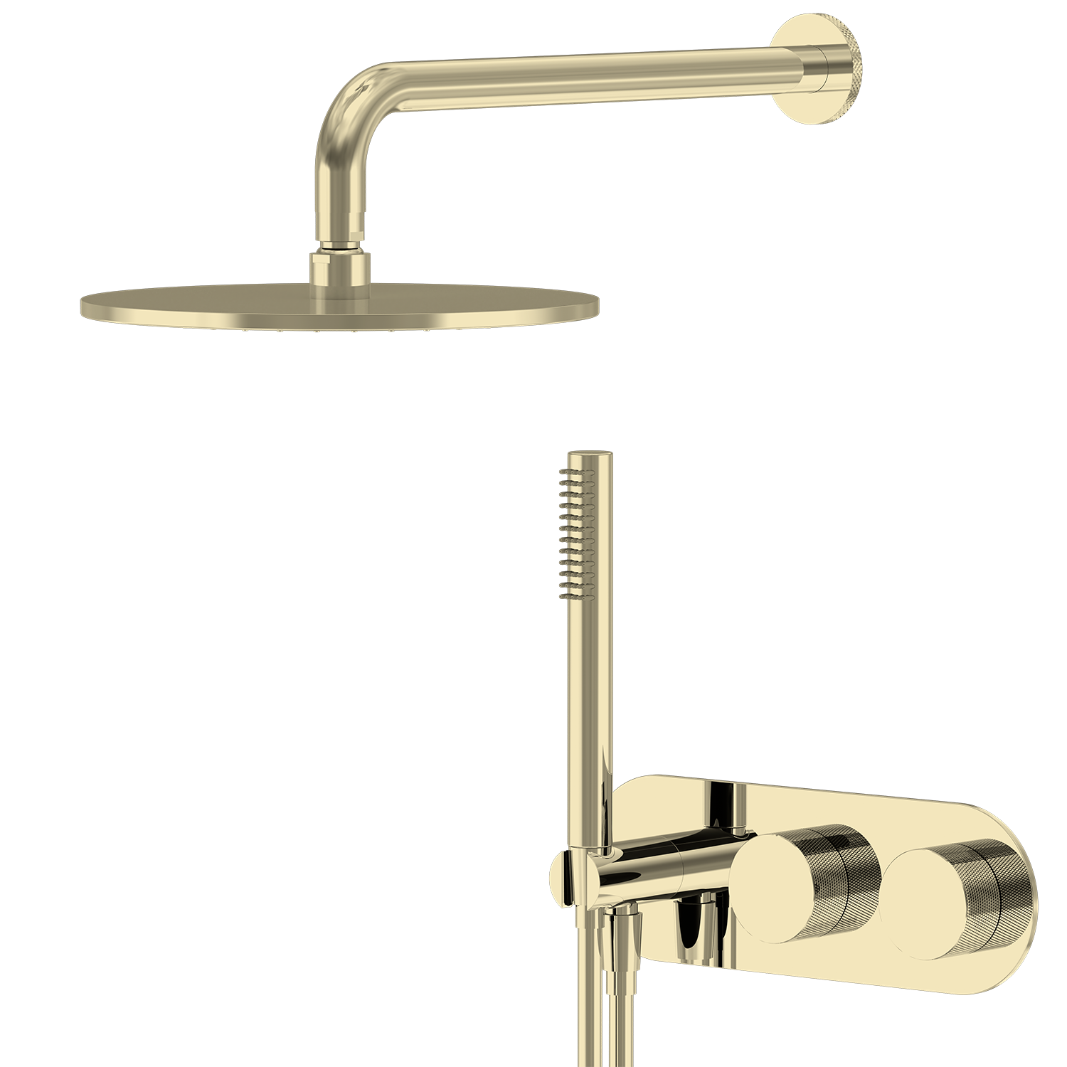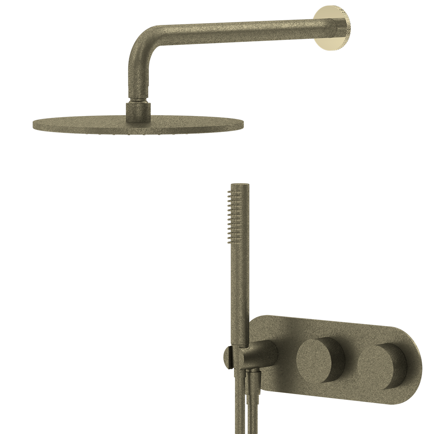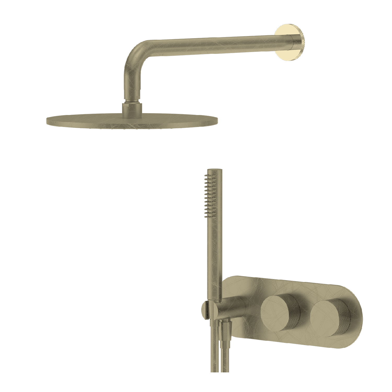 74 Series Concealed Shower Cover with Brushed Brass Handheld and Overhead Shower Dual Controls