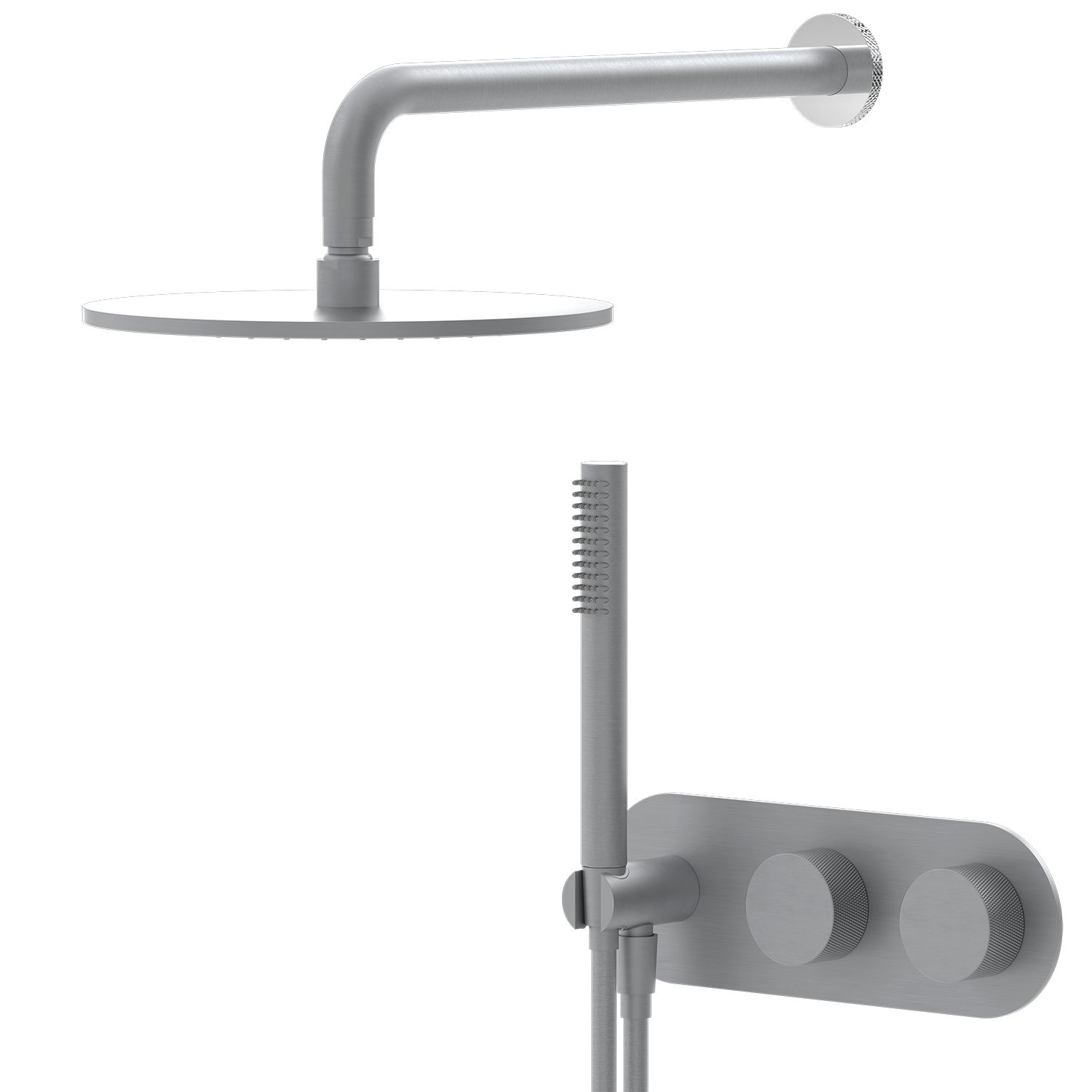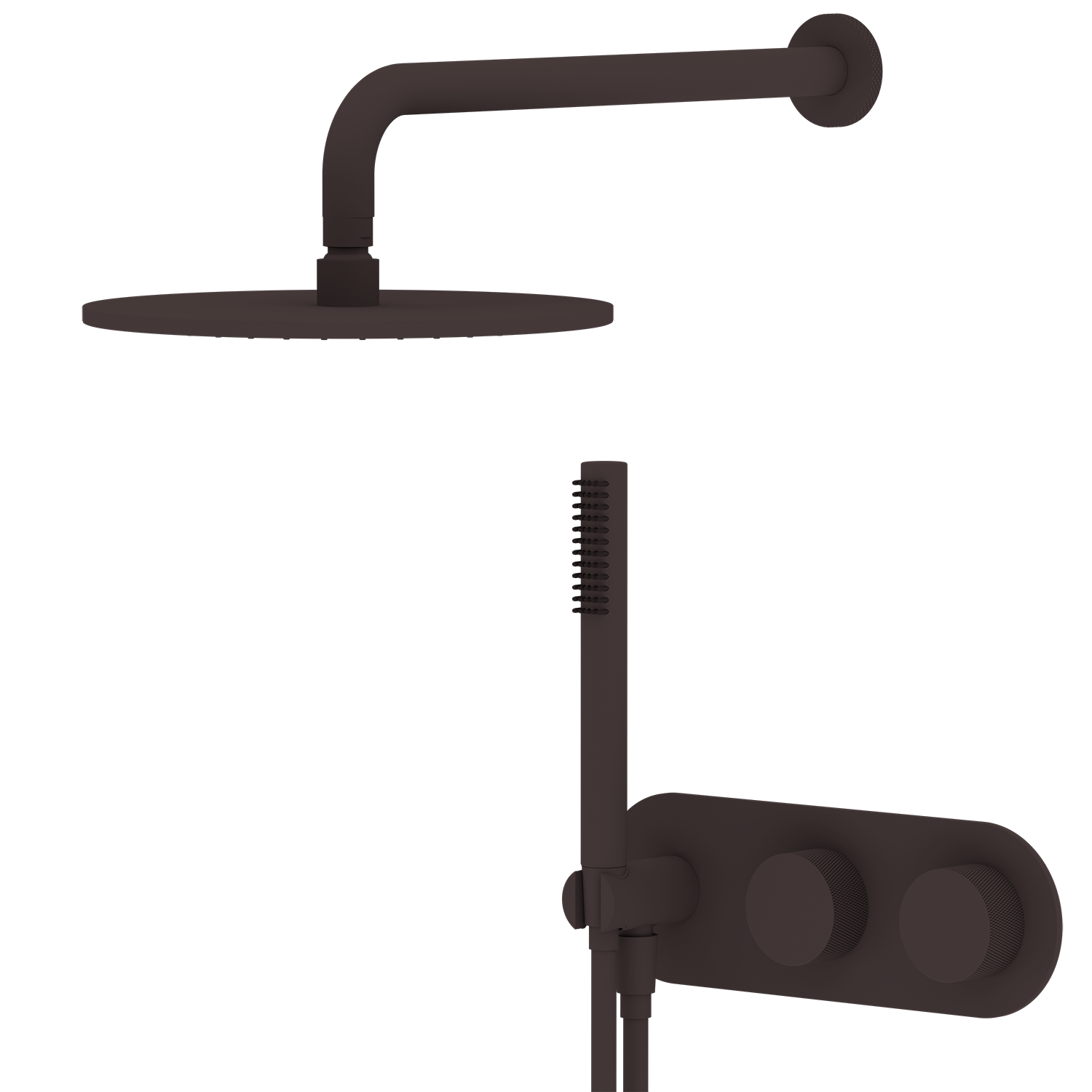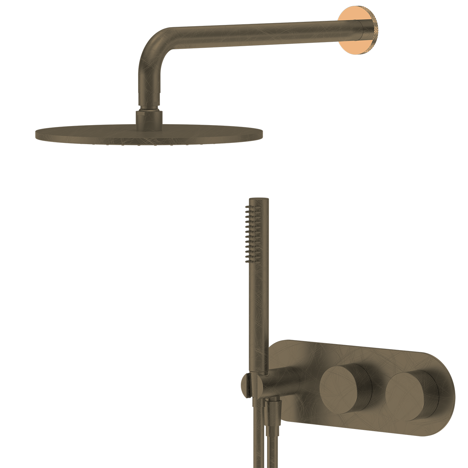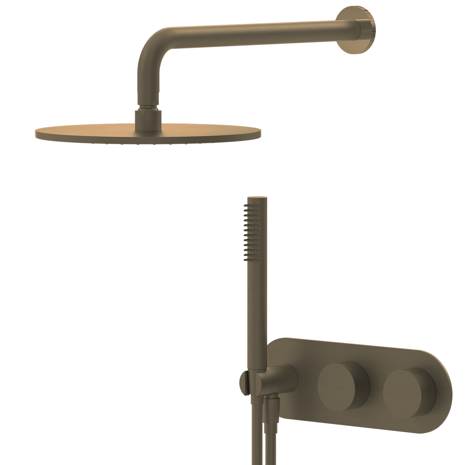 74 Series Concealed Shower Cover with Brushed Brass Handheld and Overhead Shower Dual Controls
