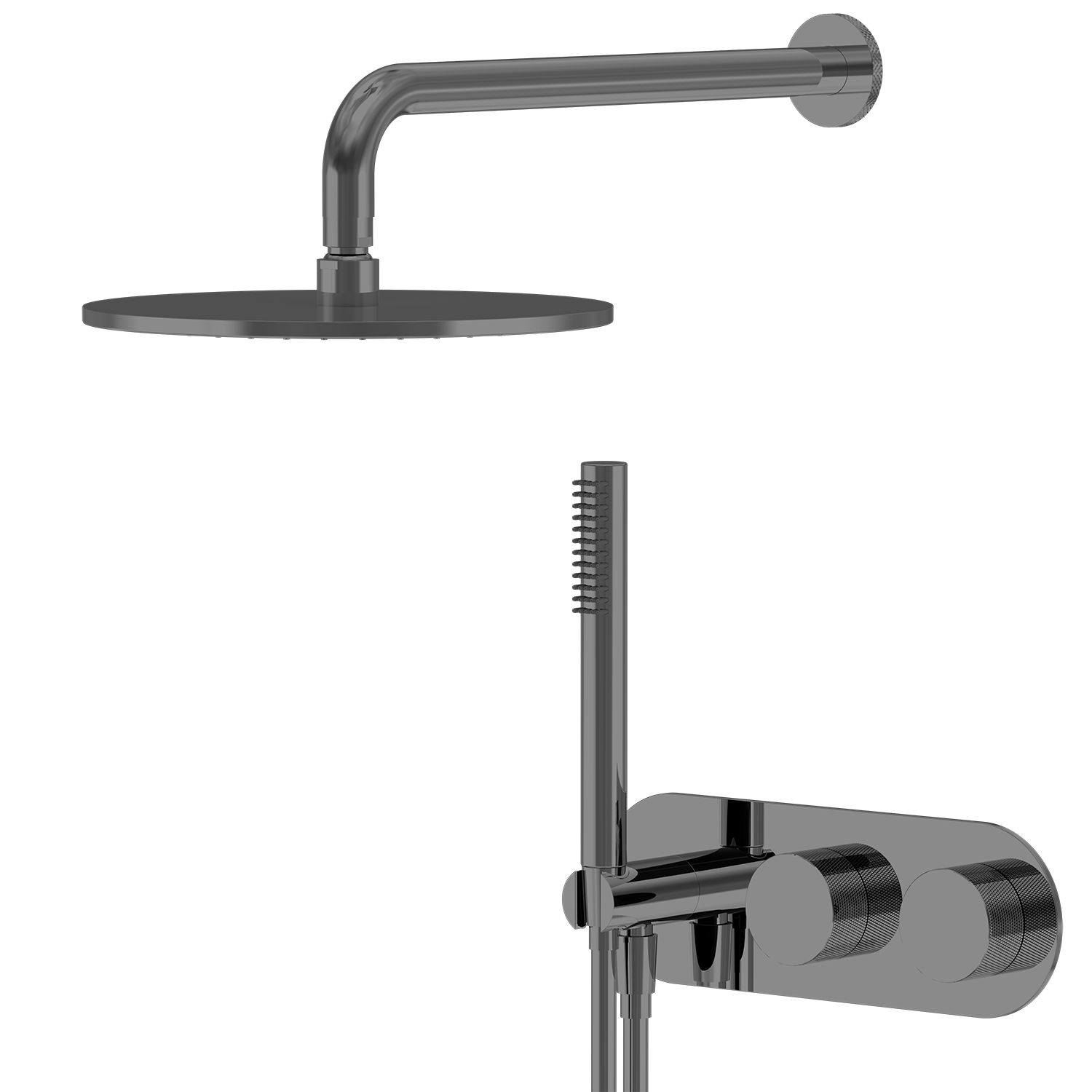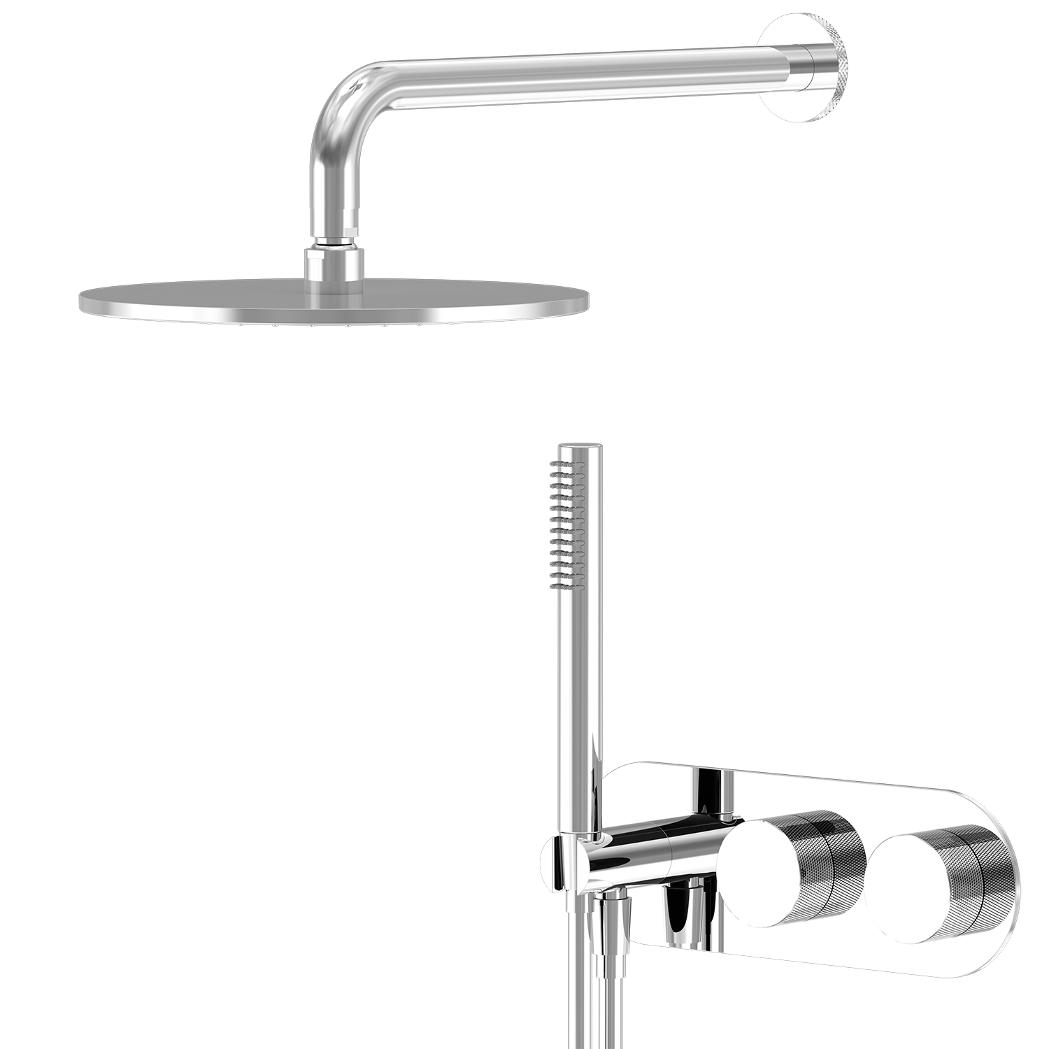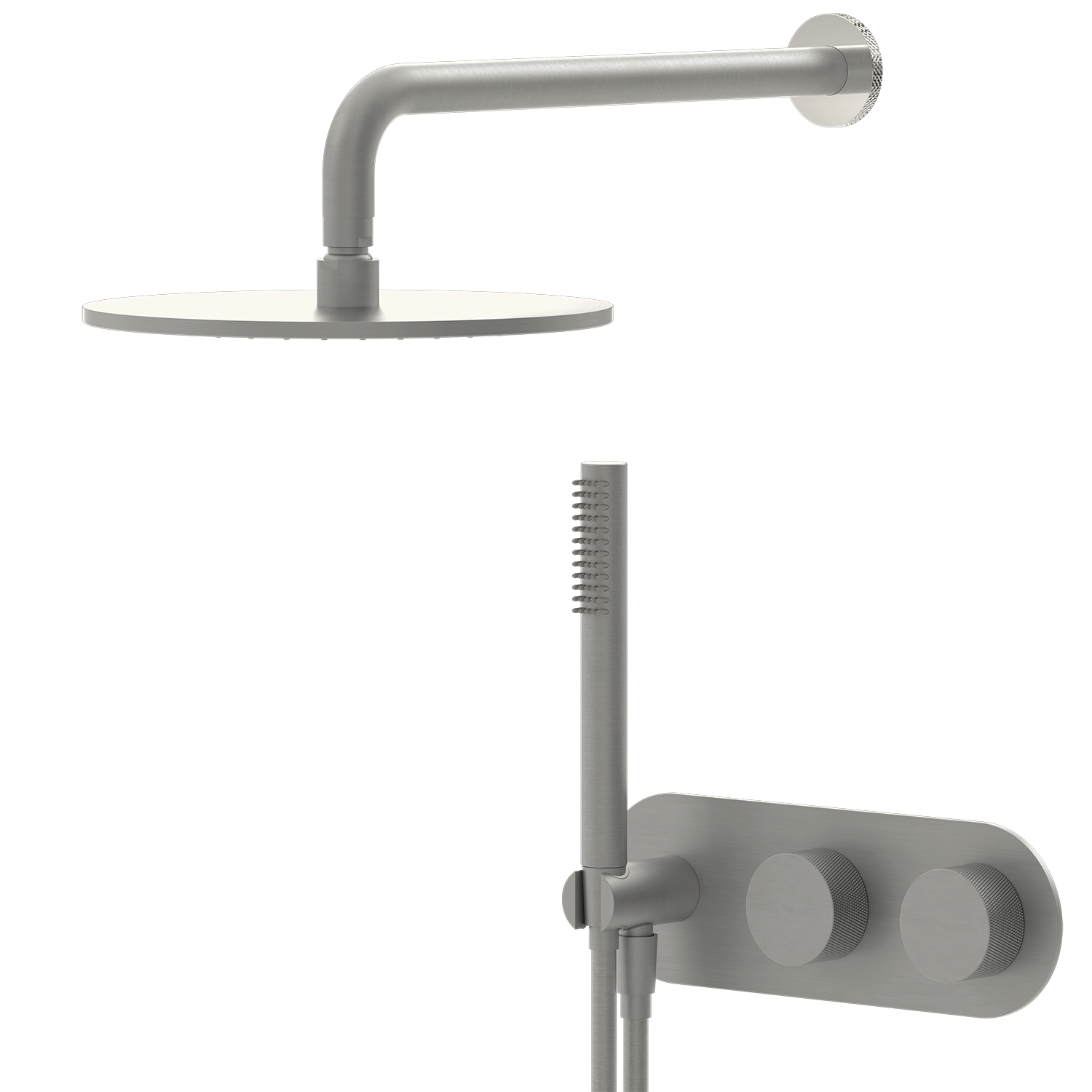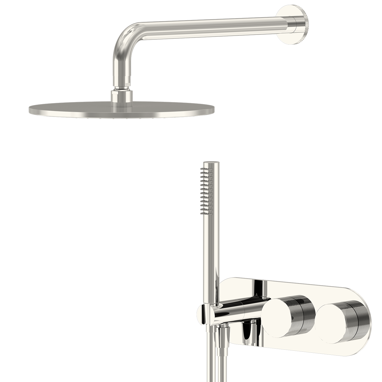 74 Series Concealed Shower Cover with Brushed Brass Handheld and Overhead Shower Dual Controls