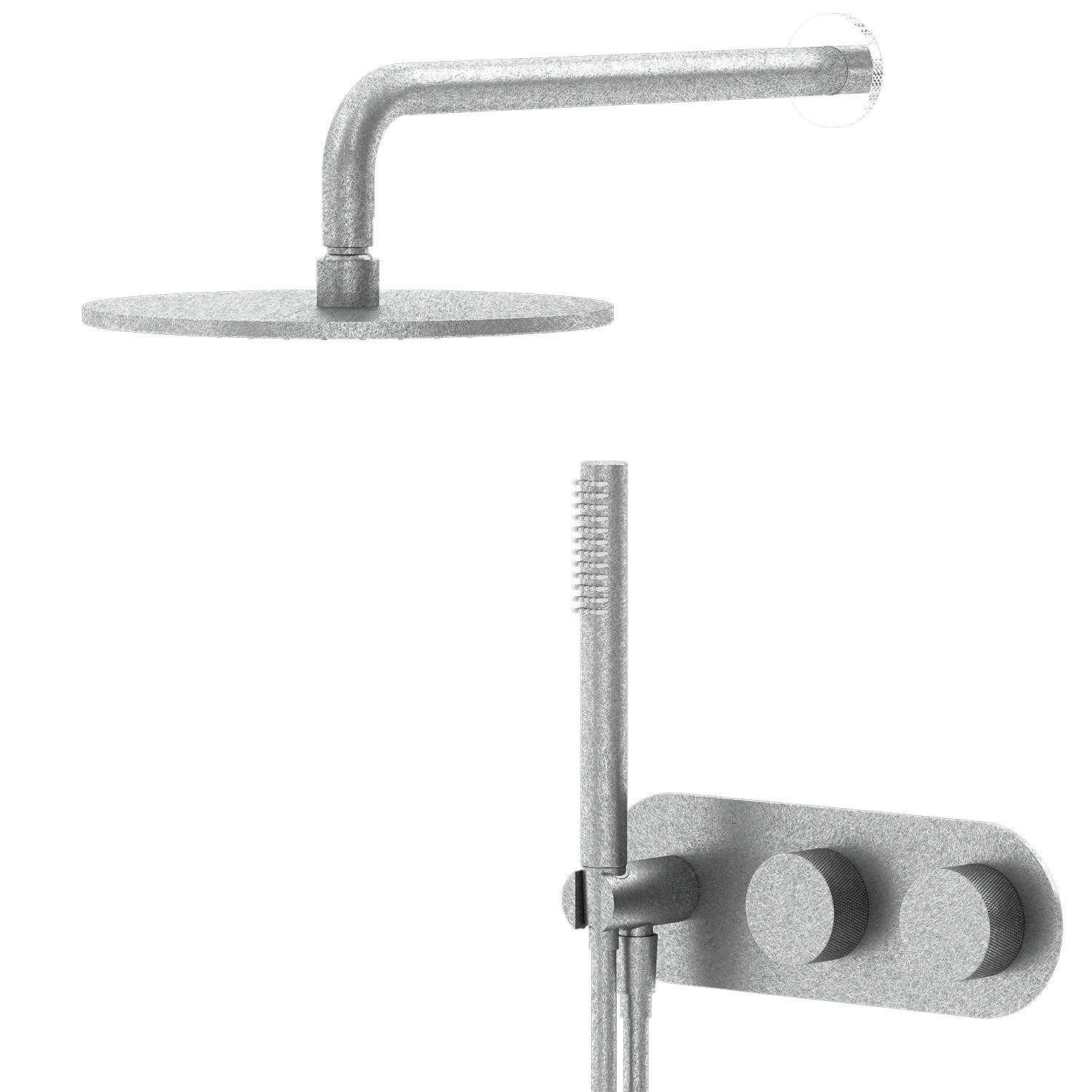Wholesale shower sets, brass shower heads, custom-designed shower heads for commercial projects, brushed gold marble dual-control concealed installation, hotel-grade, multiple water flow modes, customizable surface treatment and logo,Minimalist Bathroom Style, Handheld & Overhead Shower Combo