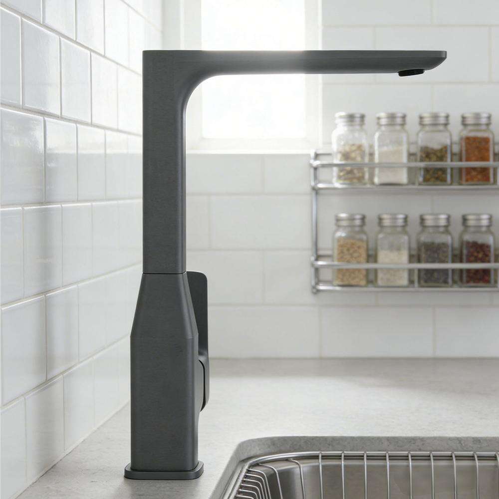 This series embodies a sleek, contemporary geometric aesthetic, with a unified design language that covers a complete range of bathroom and kitchen fixtures, including: