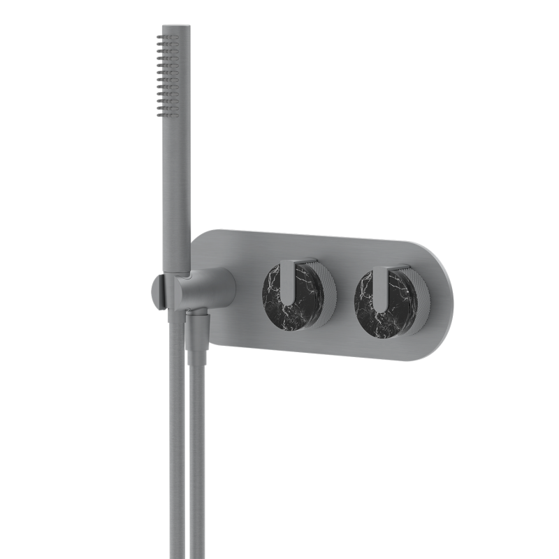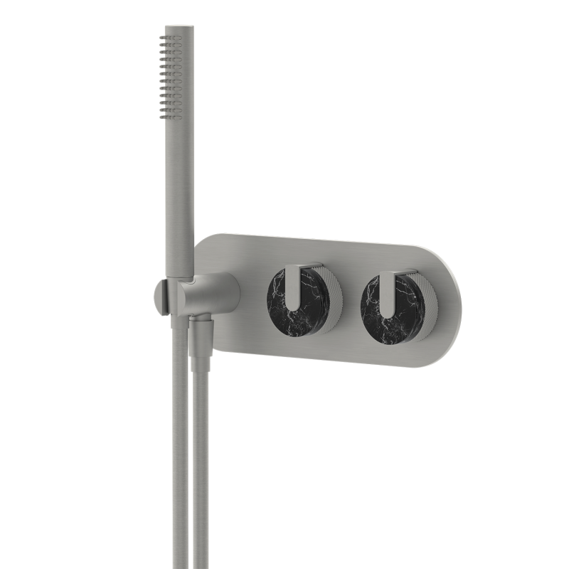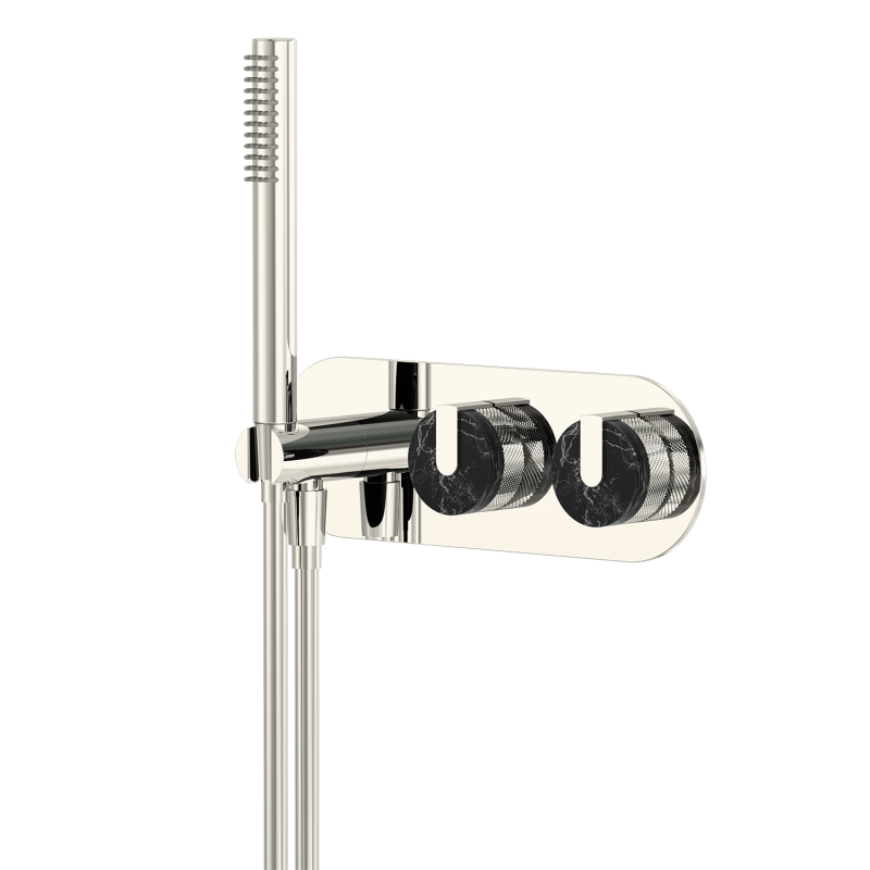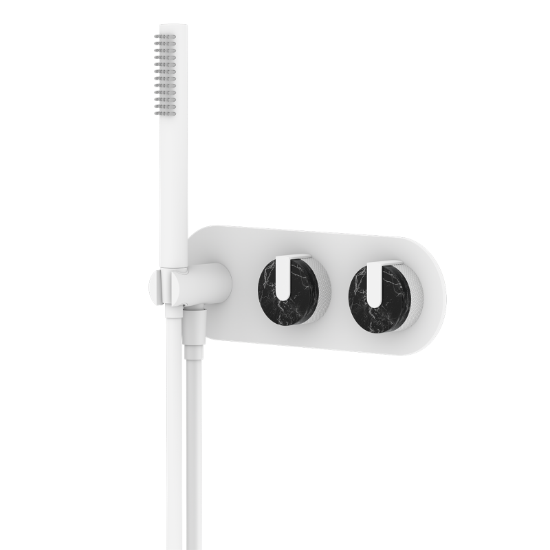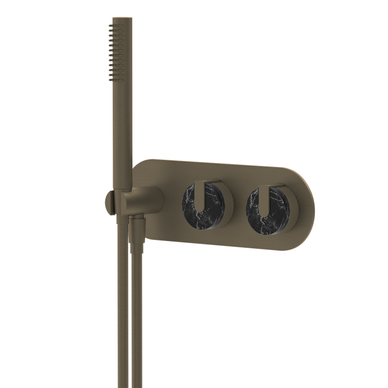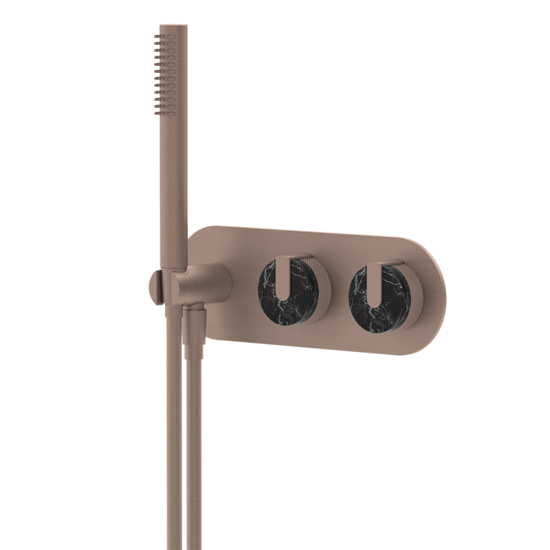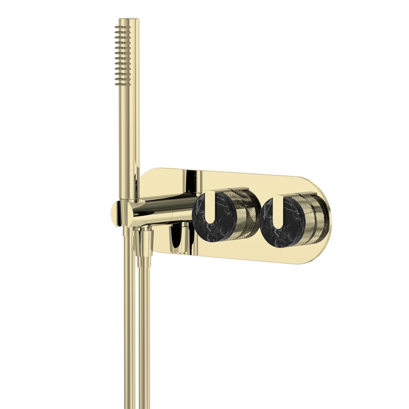 Wholesale shower sets, brass shower heads, custom-designed shower heads for commercial projects, brushed gold marble dual-control concealed installation, hotel-grade, multiple water flow modes, customizable surface treatment and logo.