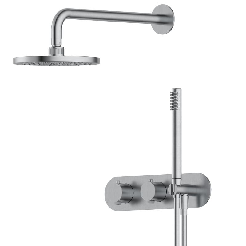 The 79 Series Shower Set is a complete bathroom solution designed for commercial and residential projects requiring both reliability and modern style. It features a square-shaped spout and round handle controls, offering a geometric, contemporary design that combines elegance with practical usability. Constructed from solid brass components, the set delivers long-lasting durability, corrosion resistance, and stable performance under frequent daily use. Its elegant finish—available in matte black, chrome, or metallic tones—resists discoloration and wear while enhancing the bathroom’s aesthetic. The shower set includes a wall-mounted mixer, adjustable hand shower, and rain shower head, providing versatile water flow options for a comfortable and luxurious shower experience. Ergonomically designed round handle controls allow precise adjustment of water temperature and flow, supported by a durable ceramic valve core for leak prevention and long-term reliability. The 79 Series Shower Set is ideal for hotels, serviced apartments, commercial bathrooms, and residential renovations. For large-scale or custom projects, surface finish modifications and logo customization ensure seamless integration into cohesive bathroom and interior design schemes. |