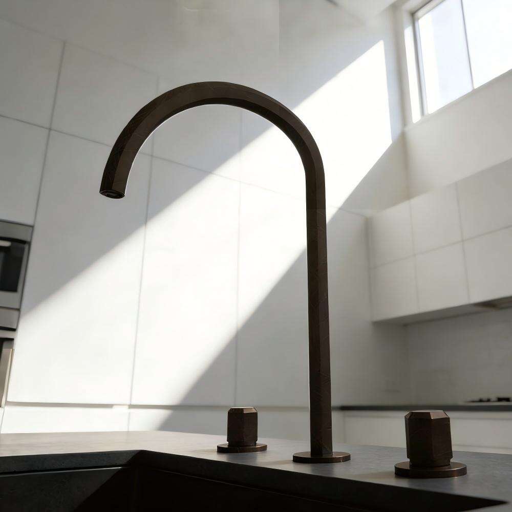 This series features a cohesive modern geometric aesthetic, with a unified design language that spans a complete range of bathroom and kitchen fittings, including: Basin Mixer Tap, Kitchen Mixer Tap, Wall Mixer, Mixer with Diverter, and matching bathroom accessories (Towel Rack, Double Towel Rack, Bathroom Shelf with Metal, Toilet Roll Holder, Towel Ring, Robe Hook), as well as door and cabinet hardware (Linear Door Handle, Rotary Door Knob, Door Stop, Double-Sided Pull, Door Hinge, Glass Clamp, Cabinet Door Handle, T-Bar Cabinet Door Handle, Cabinet Door Knob). Each piece is defined by clean, angular lines and minimalist forms—rejecting unnecessary ornamentation to prioritize functional integrity and sculptural modernity. The consistent geometric logic across faucets, accessories, and hardware ensures visual harmony, making the series ideal for integrated project solutions.