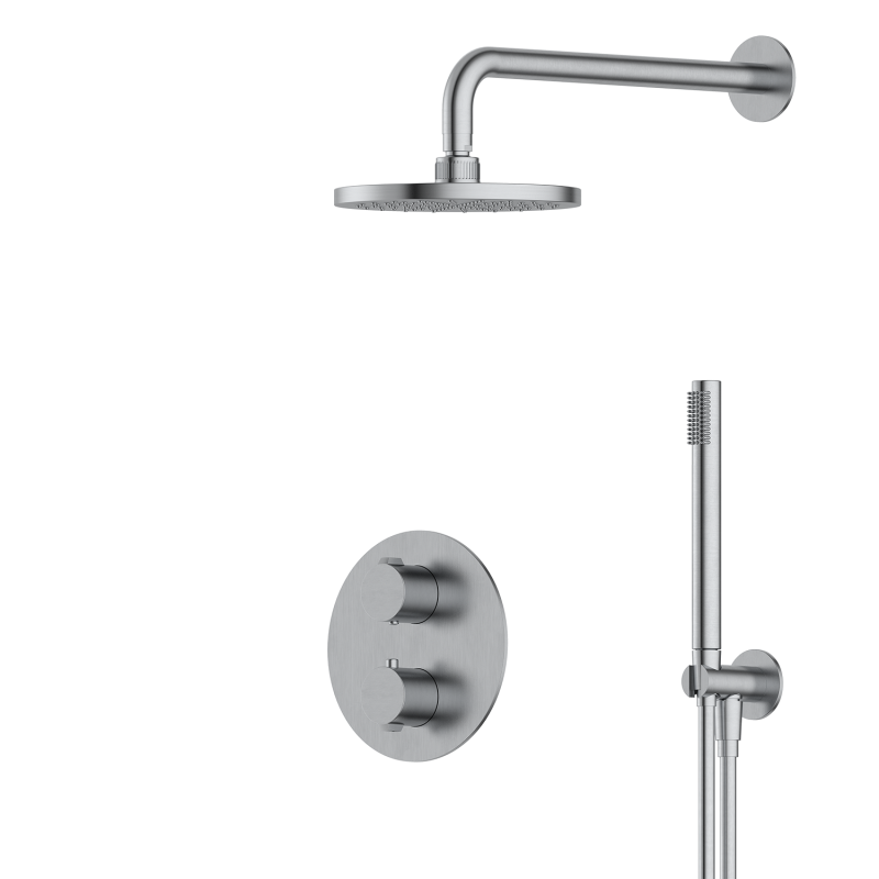 The 79 Series Shower Set is a complete bathroom shower system designed for both commercial and residential projects requiring durability, reliability, and modern design. Featuring a square shower spout and round handle controls, it delivers a clean, geometric look that enhances contemporary bathroom spaces while ensuring practical everyday usability. Constructed from premium solid brass, this shower system offers exceptional durability, corrosion resistance, and stable performance under frequent use. The high-quality surface finishes—available in matte black, chrome, and custom metallic tones—are engineered to resist discoloration, scratches, and wear, maintaining a refined appearance over time. The 79 Series Shower System includes a wall-mounted mixer valve, adjustable handheld shower, and overhead rain shower head, providing versatile water flow options for a comfortable and customizable shower experience. Ergonomically designed round handles allow precise control of water temperature and pressure, while the advanced ceramic valve core ensures smooth operation, leak prevention, and long-term reliability. Ideal for hotel bathrooms, apartment developments, commercial projects, and home renovations, this modern shower set meets the demands of both professional buyers and homeowners. For large-scale or branded projects, we offer OEM/ODM customization, including custom finishes, logo branding, and tailored packaging solutions to align with your brand and interior design requirements. |