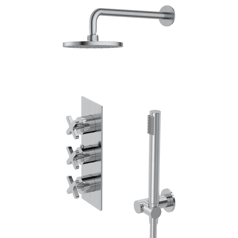 X Series Shower Set is a hospitality-grade bathroom shower solution developed for hotel projects, serviced apartments, and guestroom installations. Combining a distinctive X-handle design with robust engineering, this hotel-standard shower system ensures durability, ease of maintenance, and consistent performance across high-occupancy environments. Constructed from DZR low lead brass, this high-use shower fixture is designed to withstand continuous operation in hotel bathrooms and commercial accommodation settings. The chrome-plated surface finish, tested through 48-hour acidic salt spray validation, provides excellent resistance to corrosion, staining, and surface wear—ideal for maintaining a polished appearance in daily-use guest bathrooms. The signature X-handle mixer design enables smooth water adjustment and temperature stability, improving user experience for guests while simplifying operational control. This dual-function shower configuration includes an overhead spray outlet and a handheld rinse unit, offering flexibility for different guest preferences and housekeeping needs. Its clean, contemporary styling integrates seamlessly into modern hotel bathroom interiors. Engineered with a durable ceramic control cartridge (European standard), rated for over 500,000 cycles, this low-maintenance shower system reduces servicing frequency and operational downtime. With a working pressure range of 0.05–0.8 MPa, this hospitality-compatible shower solution adapts to a variety of plumbing infrastructures, including centralized hotel water systems and booster pump setups. Certified with Watermark approval, this compliant hotel shower fixture meets Australian plumbing regulations, making it suitable for regulated hospitality developments and refurbishment projects. Its consistent specification and reliable performance make it an ideal choice for multi-room standardization across hotel chains. For large-scale hotel projects, customization services are available, including finish coordination, branding integration, and specification alignment, ensuring consistency with interior design concepts and brand identity. Designed for hotel developers, operators, and procurement teams, the X Series shower system delivers durability, efficiency, and refined guest experience. |