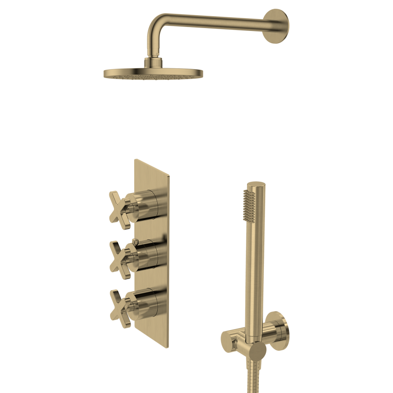 X Series High-End Brushed Golden Rain Hot Cold Shower Set