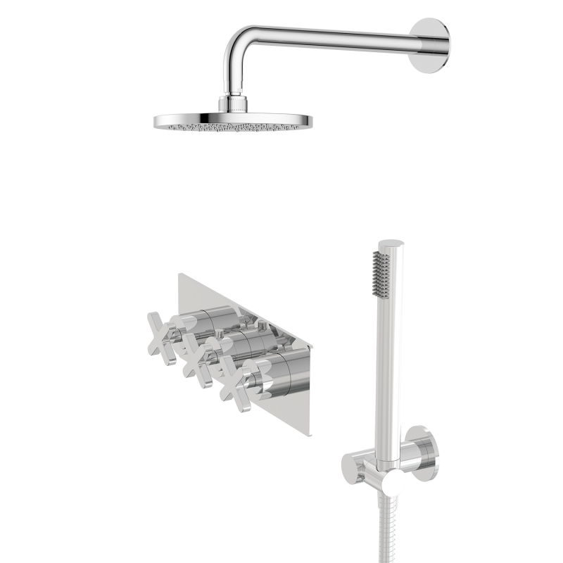 Designer shower kit with geometric X-handle mixer